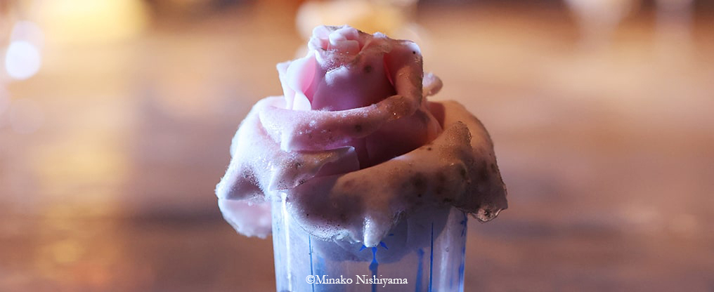 先生は今回の「高見島パフェ」より以前にも「〜melting dream〜」とタイトルにつく「溶けていくバラ」をモチーフにした作品を多く作られています。今回は以前の展示と違う点はありましたか?